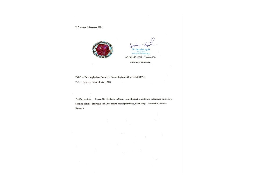 Certifikát: GIC Lab (Gemological Institute of Colombo), RNDr. Jaroslav Hyršl