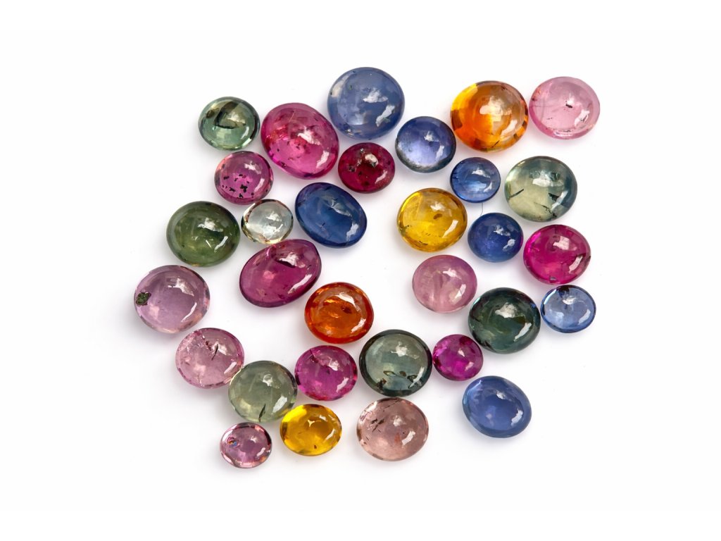 Barevný mix přírodních safírů v kulatém kabošonovém brusu o velikostech 3–5 mm a hmotnosti od 0,4 ct. Safíry mají intenzivní a jasné barvy – ideální pro kreativní šperky, mozaiky či osazování do hravých designů. Pochází ze Srí Lanky, jsou žíhány (heated) – běžně přijímaná úprava v gemologii. Díky vysoké tvrdosti 9 jsou velmi odolné. Výborná volba pro originální projekty s přirozeným charakterem.