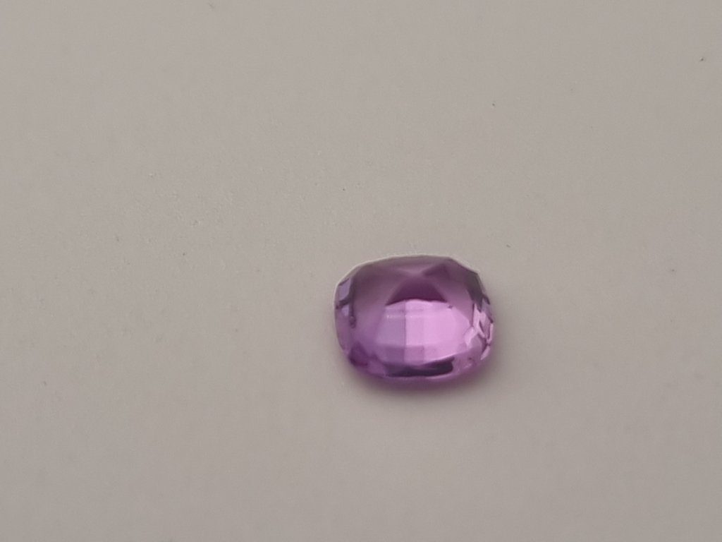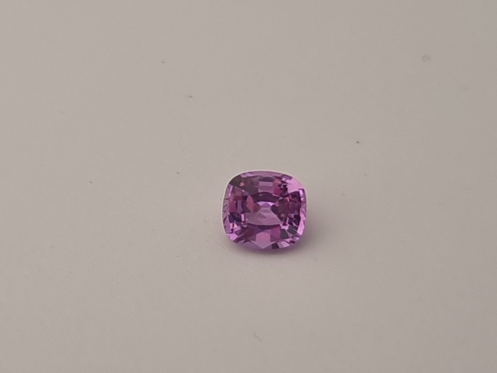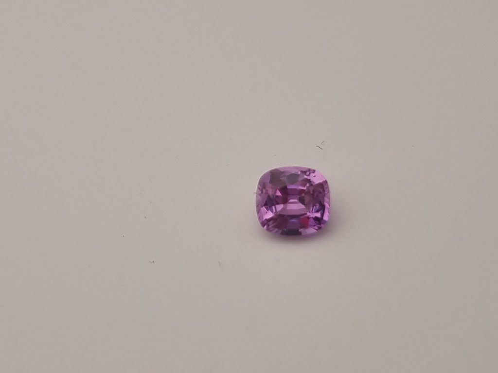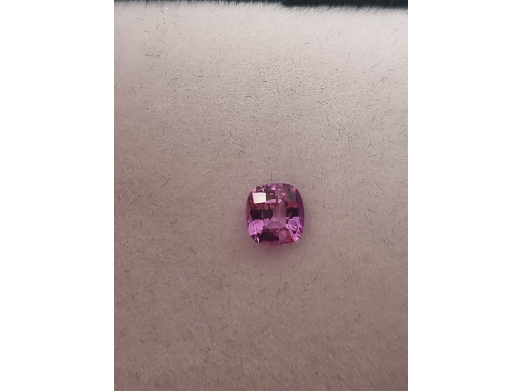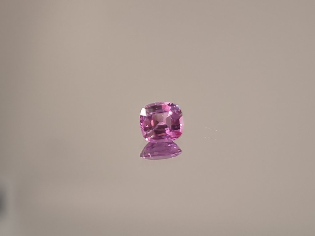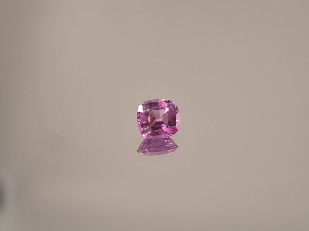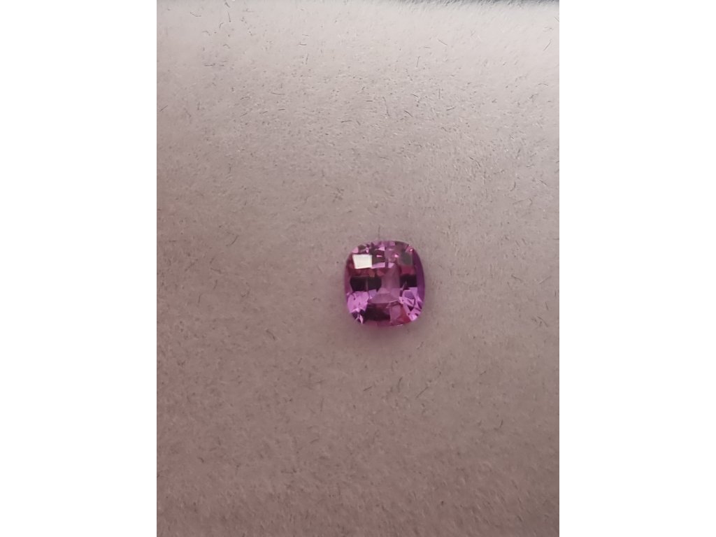 Tento přírodní růžový korund ze Srí Lanky okouzlí svým jemným odstínem růžové s nádechem do fialova, který působí romanticky a zároveň elegantně. Kámen má hmotnost 0,54 ct, rozměry 4,80 × 4,49 mm a je čistý, bez viditelných inkluzí. Precizní cushion brus zvýrazňuje jeho barvu i lesk. Kámen byl tepelně upraven (H/Heated) – běžně akceptovanou metodou, která zvyšuje jeho optickou kvalitu. Díky tvrdosti 9 na Mohsově stupnici je ideální volbou pro každodenní i výjimečné šperky.