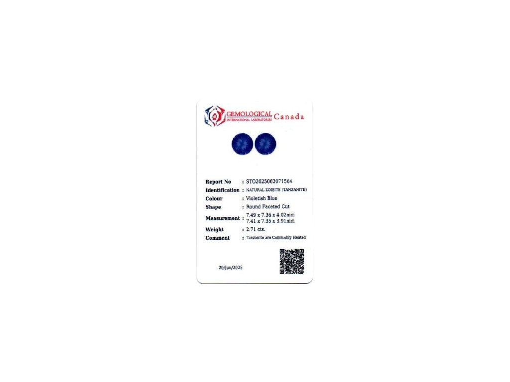 S hmotností 2,71 ct a průměrem 7,5 mm je tento kulatě broušený tanzanit ideální jako dominantní kámen do prstenu či přívěsku. Tvrdost 6,0–7,0 na Mohsově stupnici zajišťuje dostatečnou odolnost při šetrném nošení.